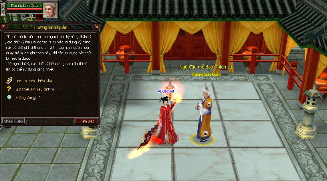 Hay còn gọi là kỹ năng chế định vị phù, cho phép định vị tại các vị trí ở các thành chính: Đại Lý, Lạc Dương, Tô Châu, Lâu Lan để nhanh chóng di chuyển.