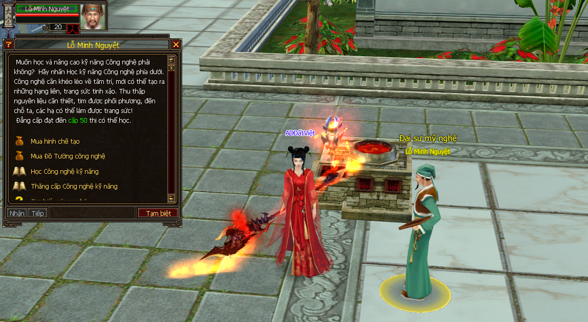-Lưu ý : Phải đứng gần các bàn thủ công bên cạnh các NPC dạy nghề mới tiến hành Công Nghệ được nhé!!