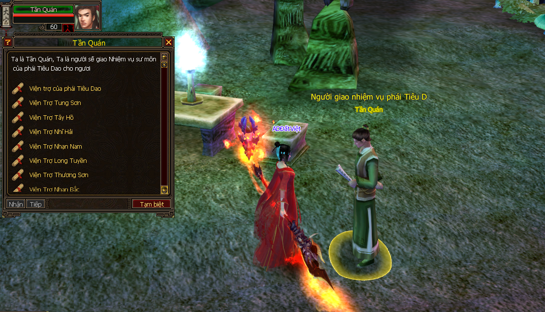 2/ Các NPC thực hiện nhiệm vụ từng Môn Phái