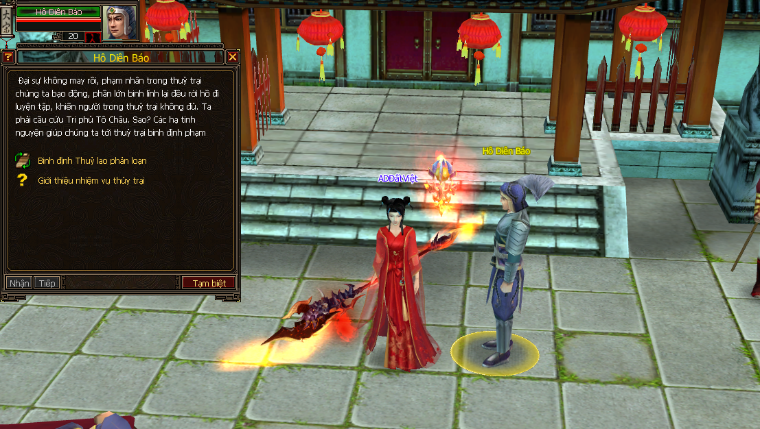 - Sau đó đến Thái Hồ gặp NPC Hồ Diên Khánh (67 - 77) để tiến vào Thuỷ Trại.