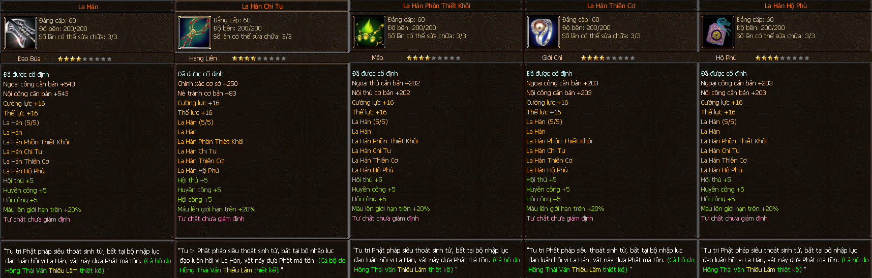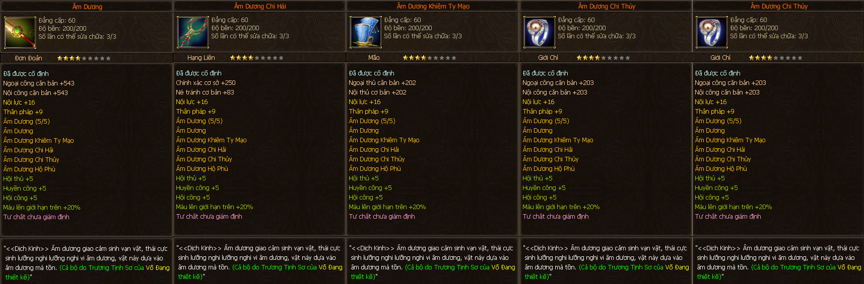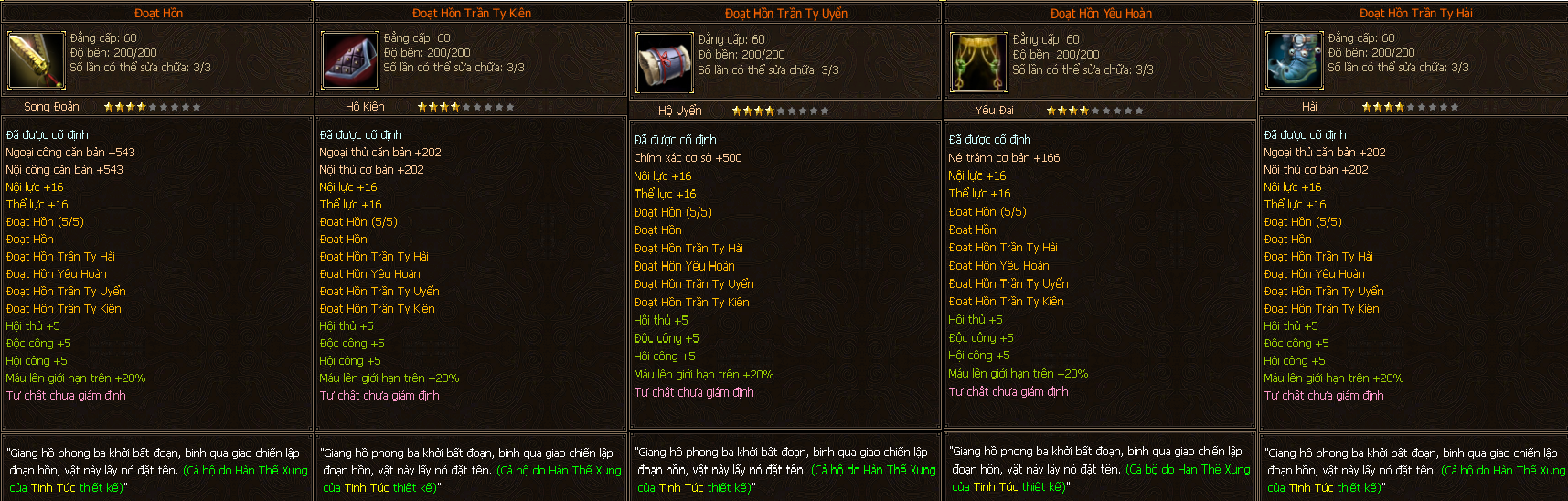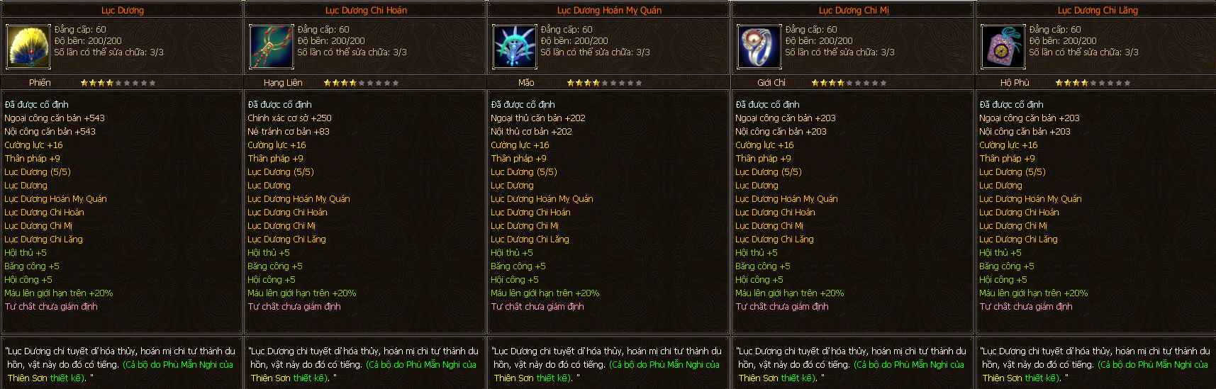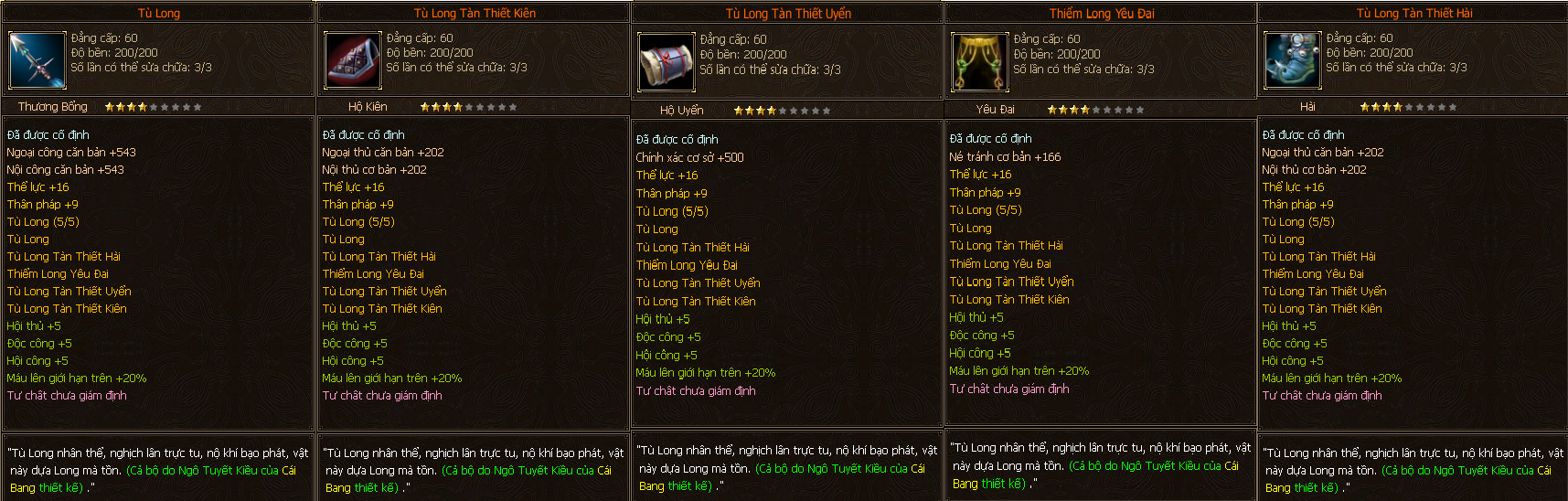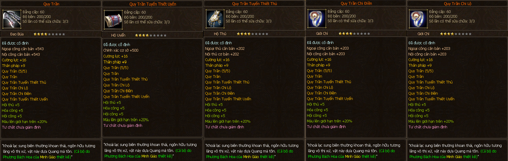 - Các trang bị Full Môn Phái cấp 60 người chơi có thể tìm thấy ở các Phó Bản(QTC).
