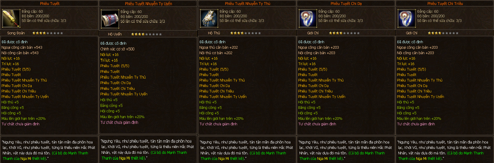 - Dưới đây là danh sách toàn bộ trang bị full Môn Phái cấp 60 của tất cả các môn phái, xin mời các bằng hữu xem tham khảo và build đồ sao cho hợp lý nhé.