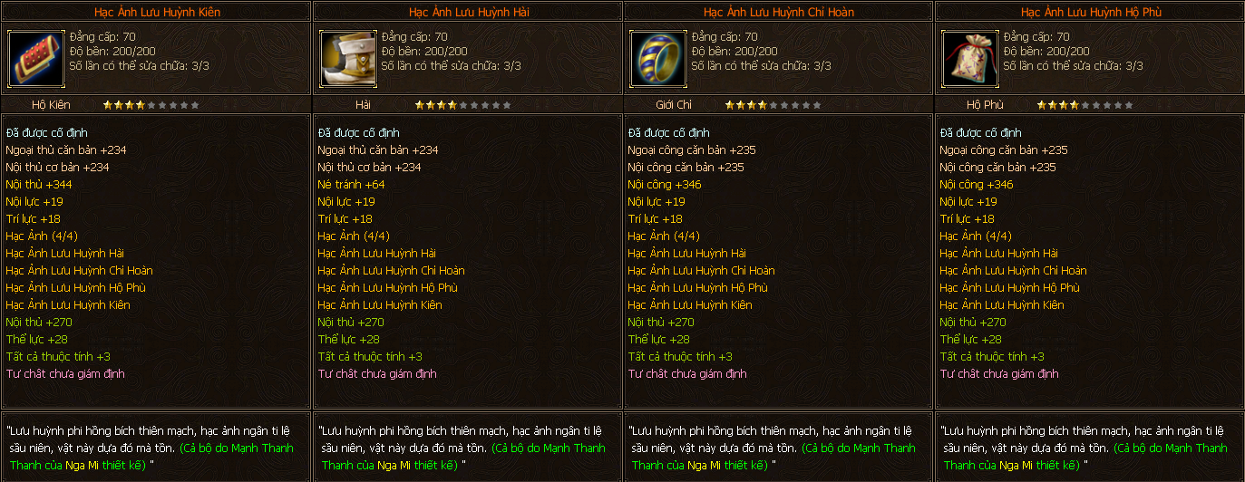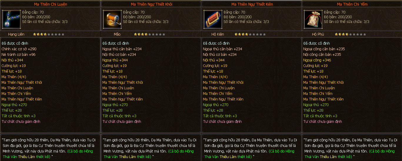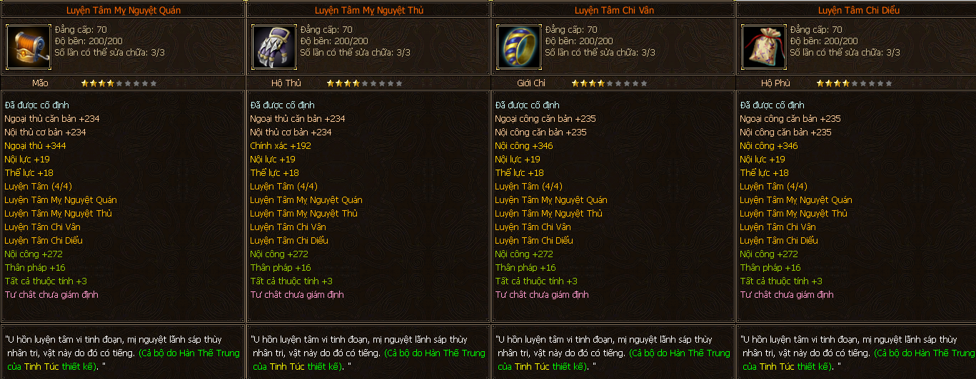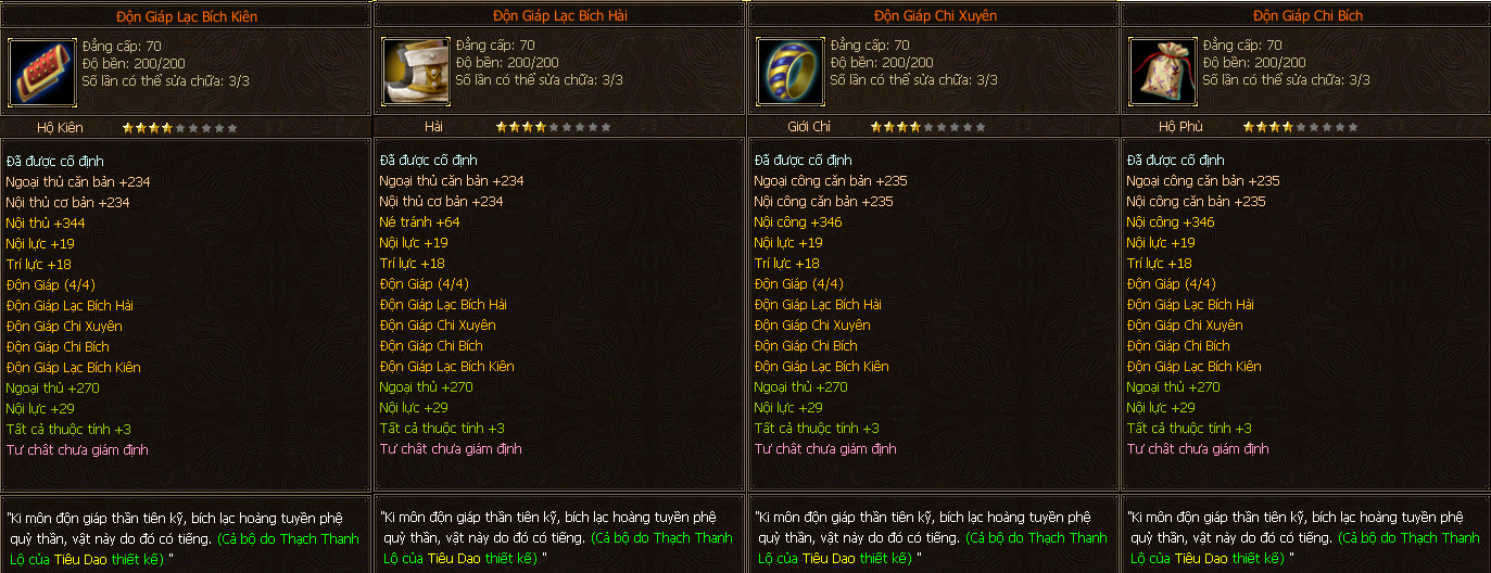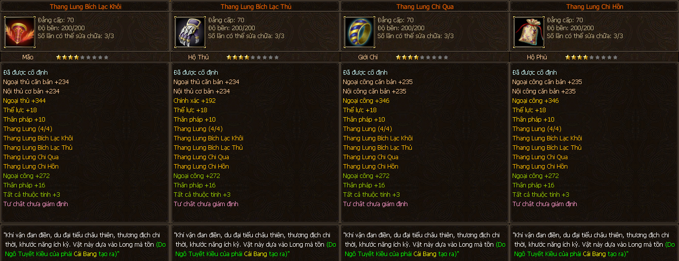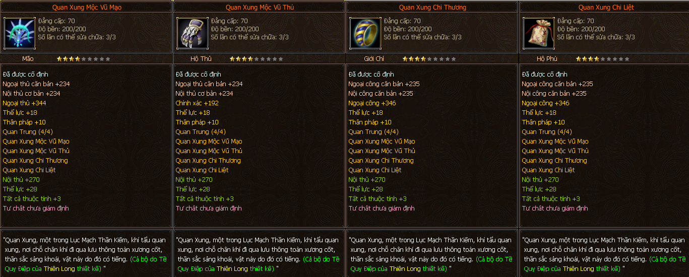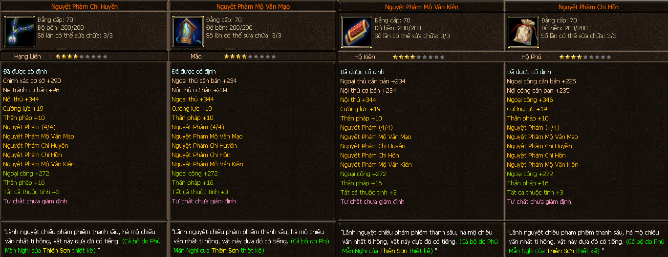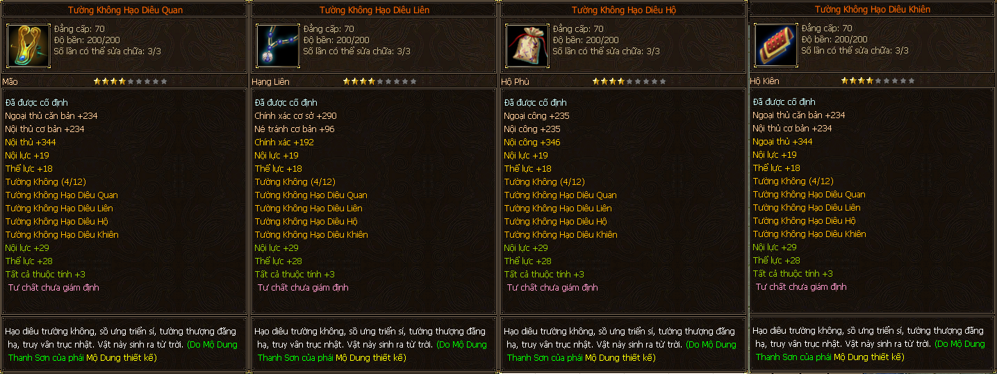 - Các trang bị Full Môn Phái cấp 70 người chơi có thể tìm thấy ở các Phó Bản(QTC).