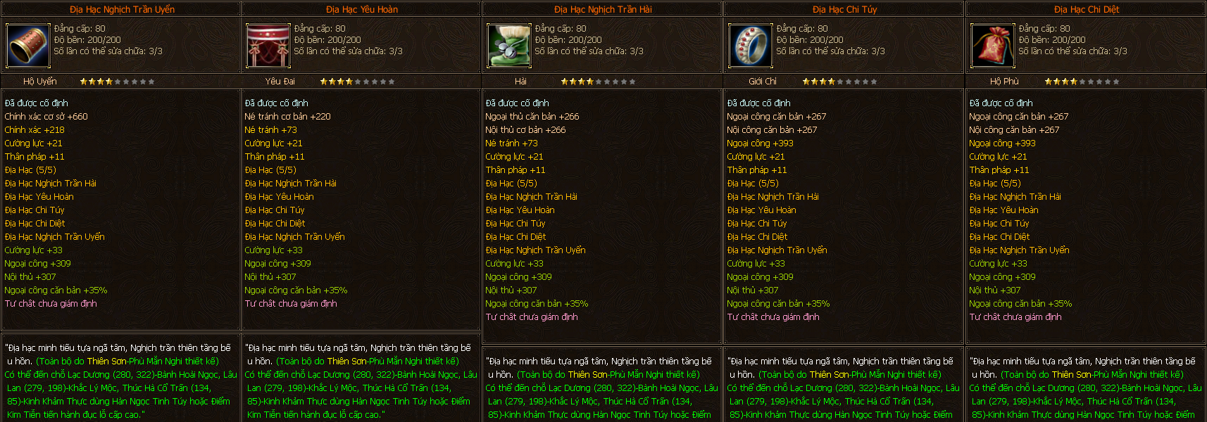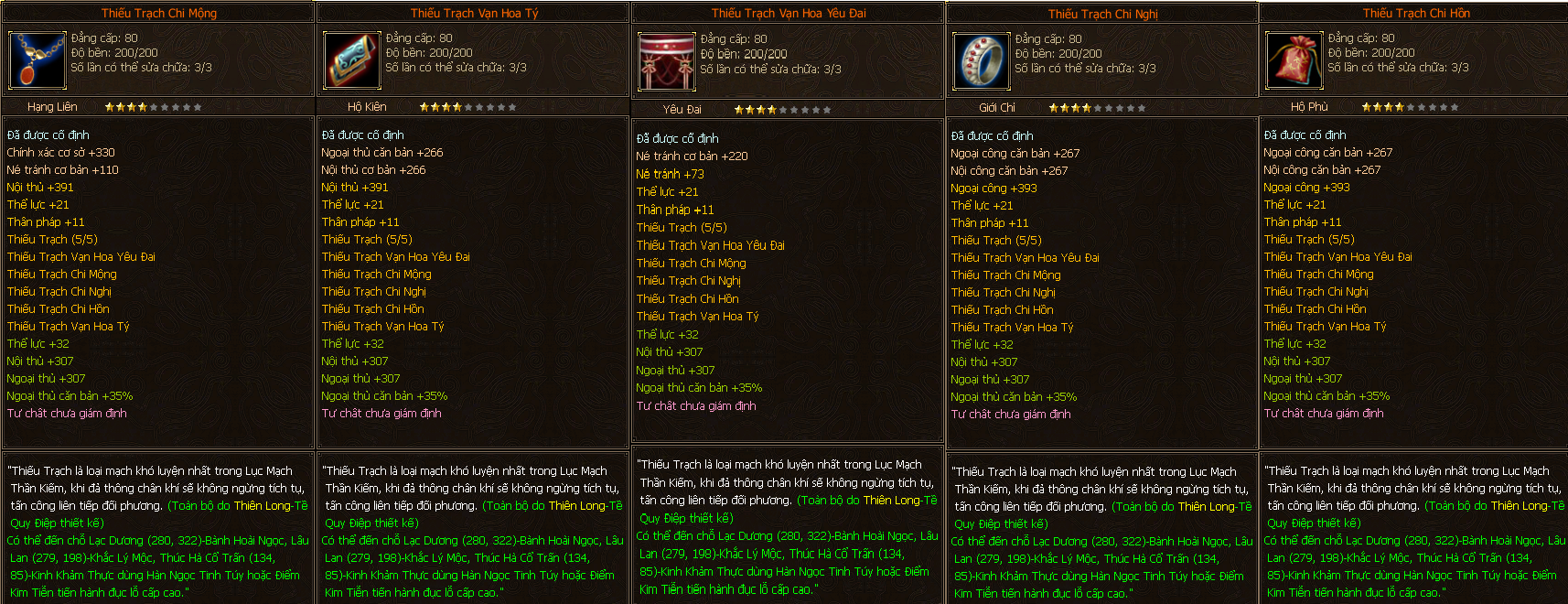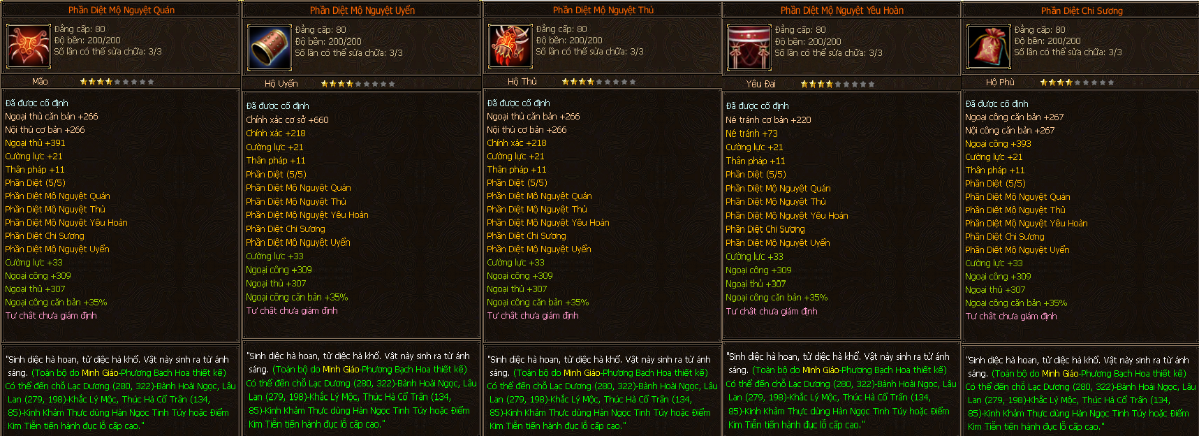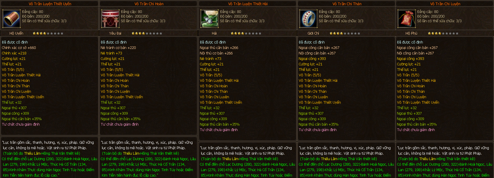 - Các trang bị Full Môn Phái cấp 80 người chơi có thể tìm thấy ở các Phó Bản(QTC, QLL).