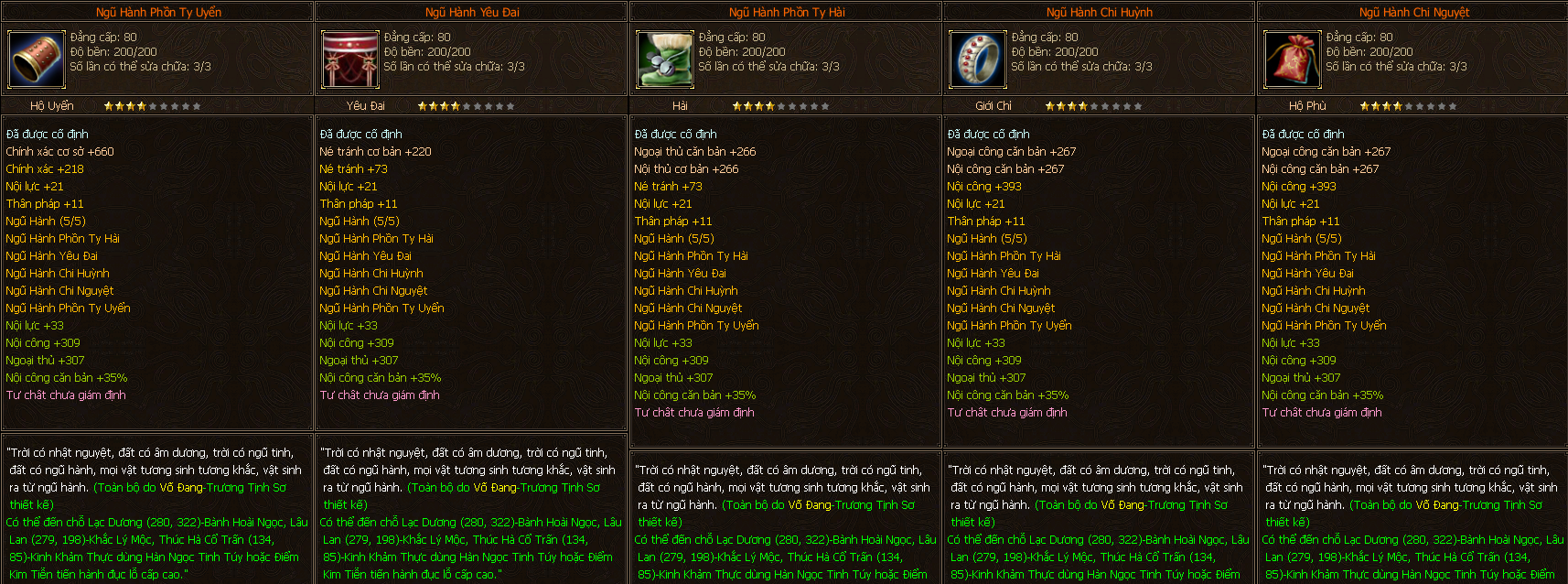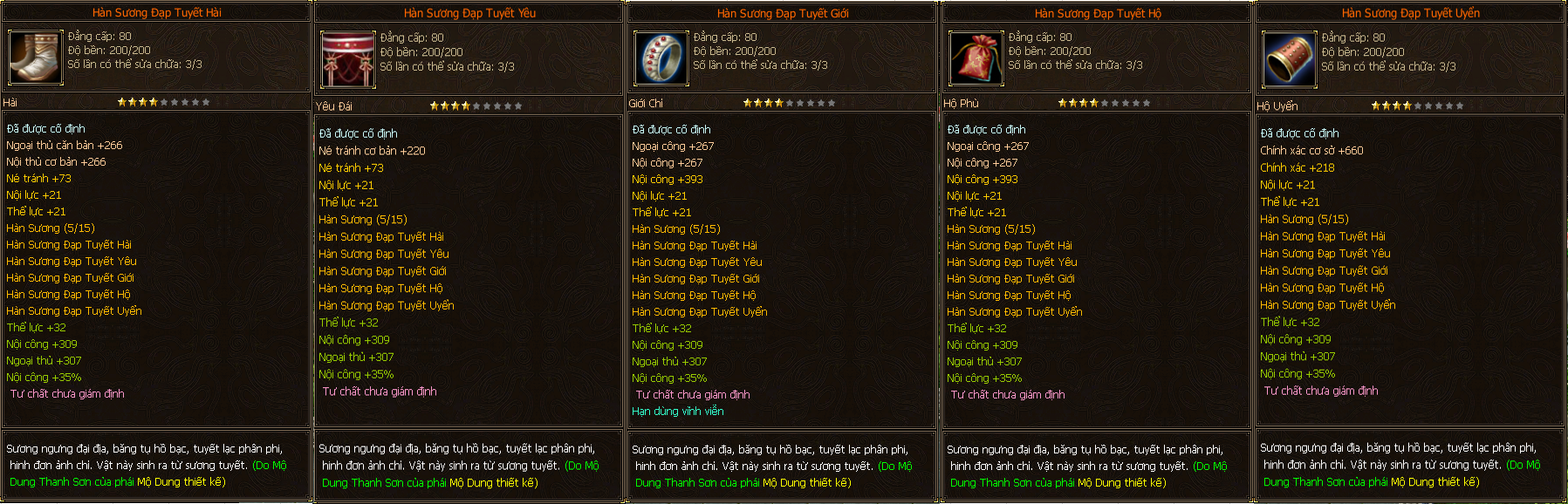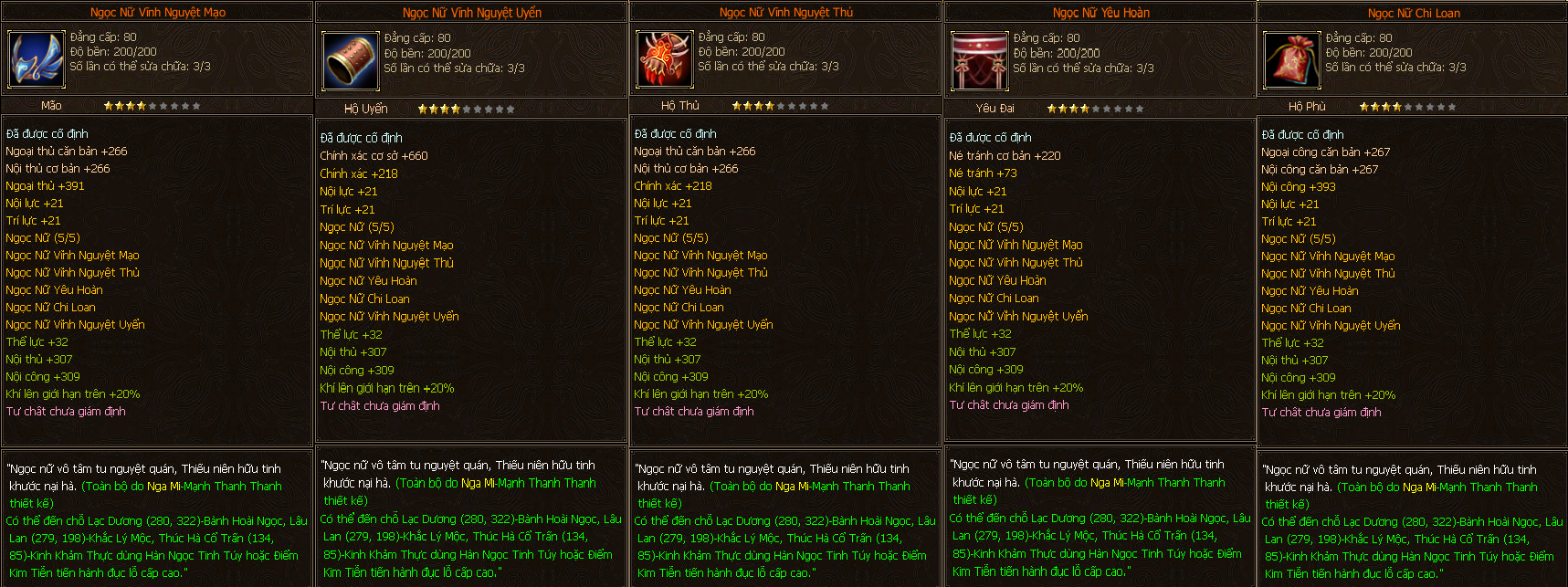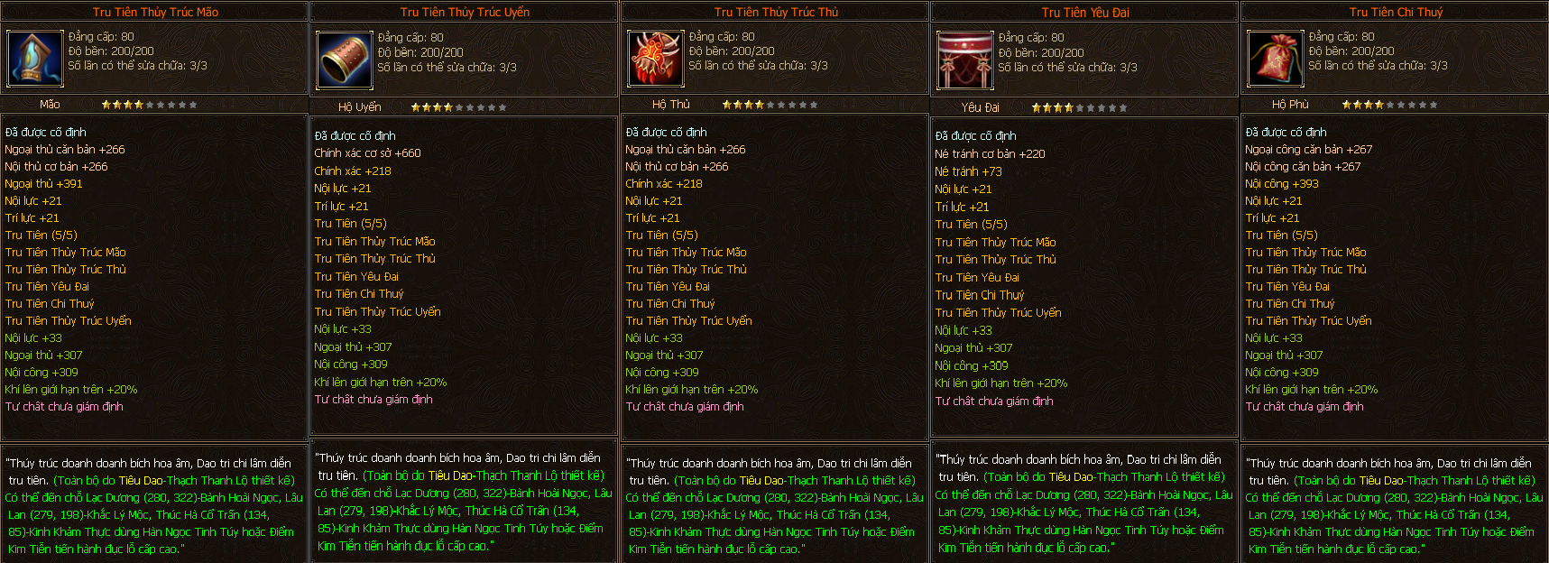- Các trang bị Full Môn Phái cấp 80 người chơi có thể tìm thấy ở các Phó Bản(QTC, QLL).