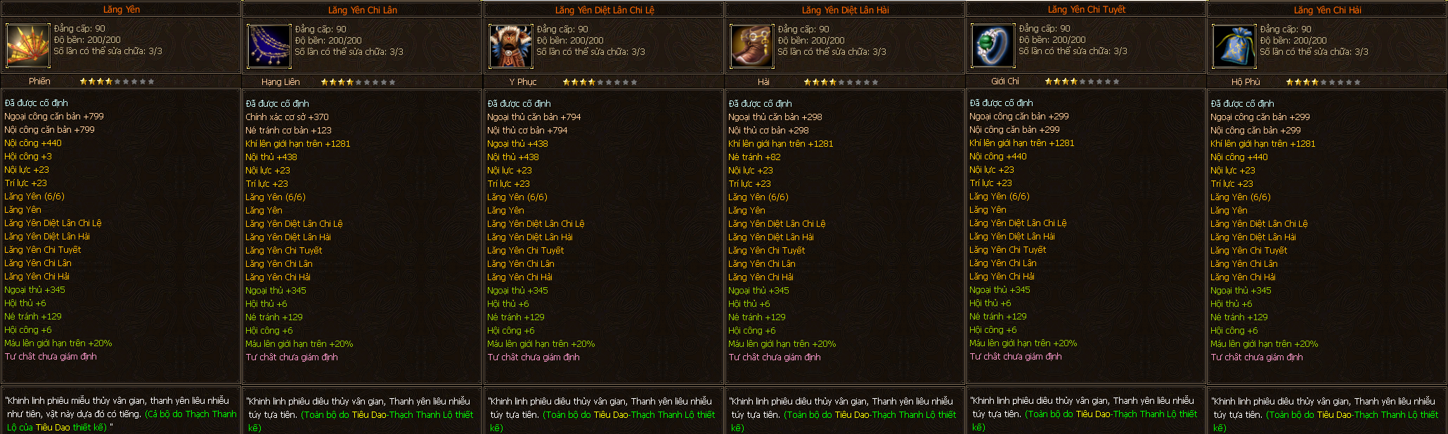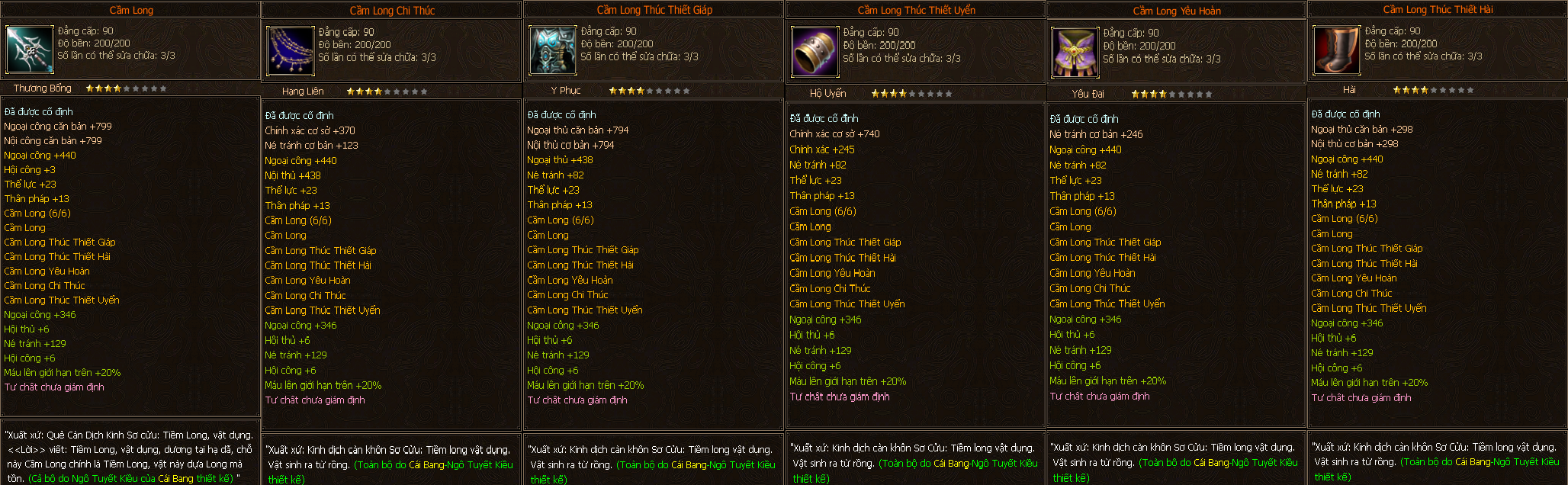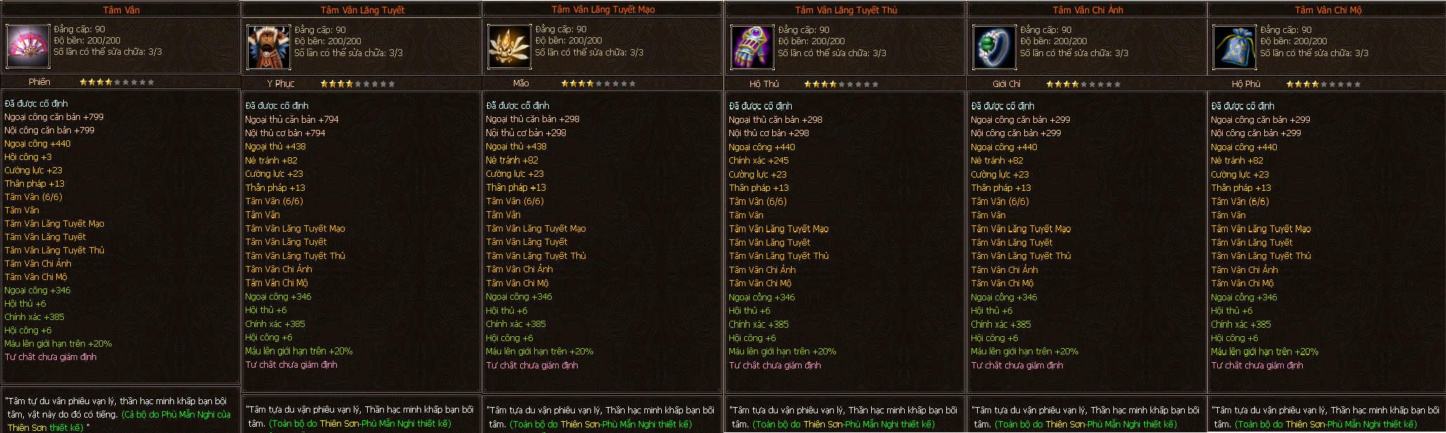 - Các trang bị Full Môn Phái cấp 90 người chơi có thể tìm thấy ở các Phó Bản(QTC, QLL).