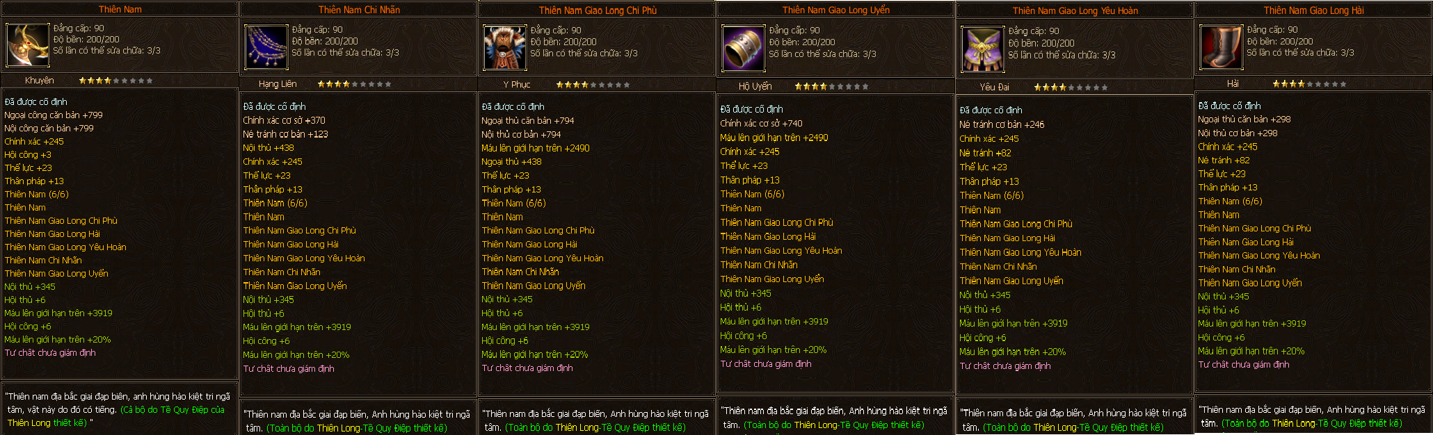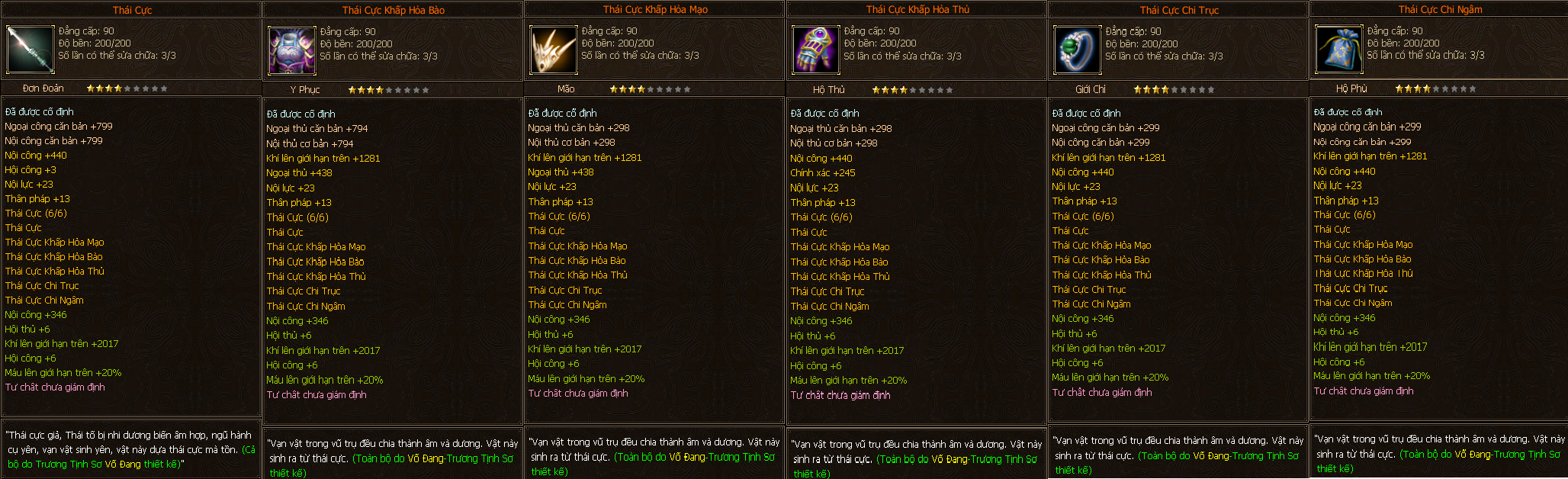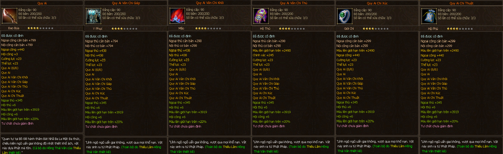 - Các trang bị Full Môn Phái cấp 90 người chơi có thể tìm thấy ở các Phó Bản(QTC, QLL).
