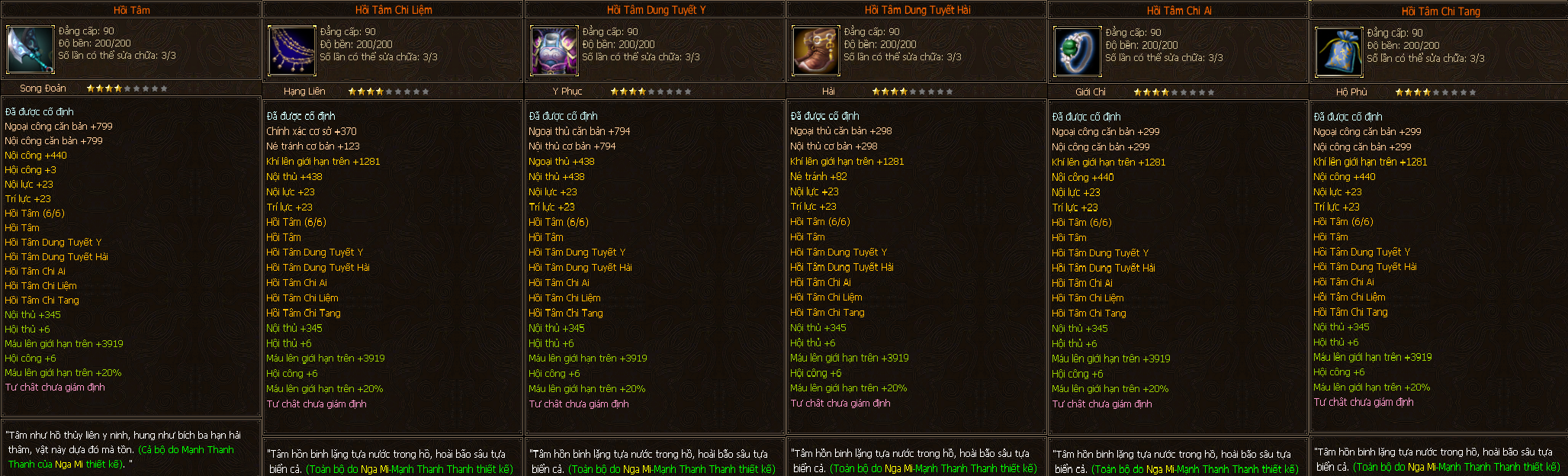 - Dưới đây là danh sách toàn bộ trang bị full Môn Phái cấp 90 của tất cả các môn phái, xin mời các bằng hữu xem tham khảo và build đồ sao cho hợp lý nhé.